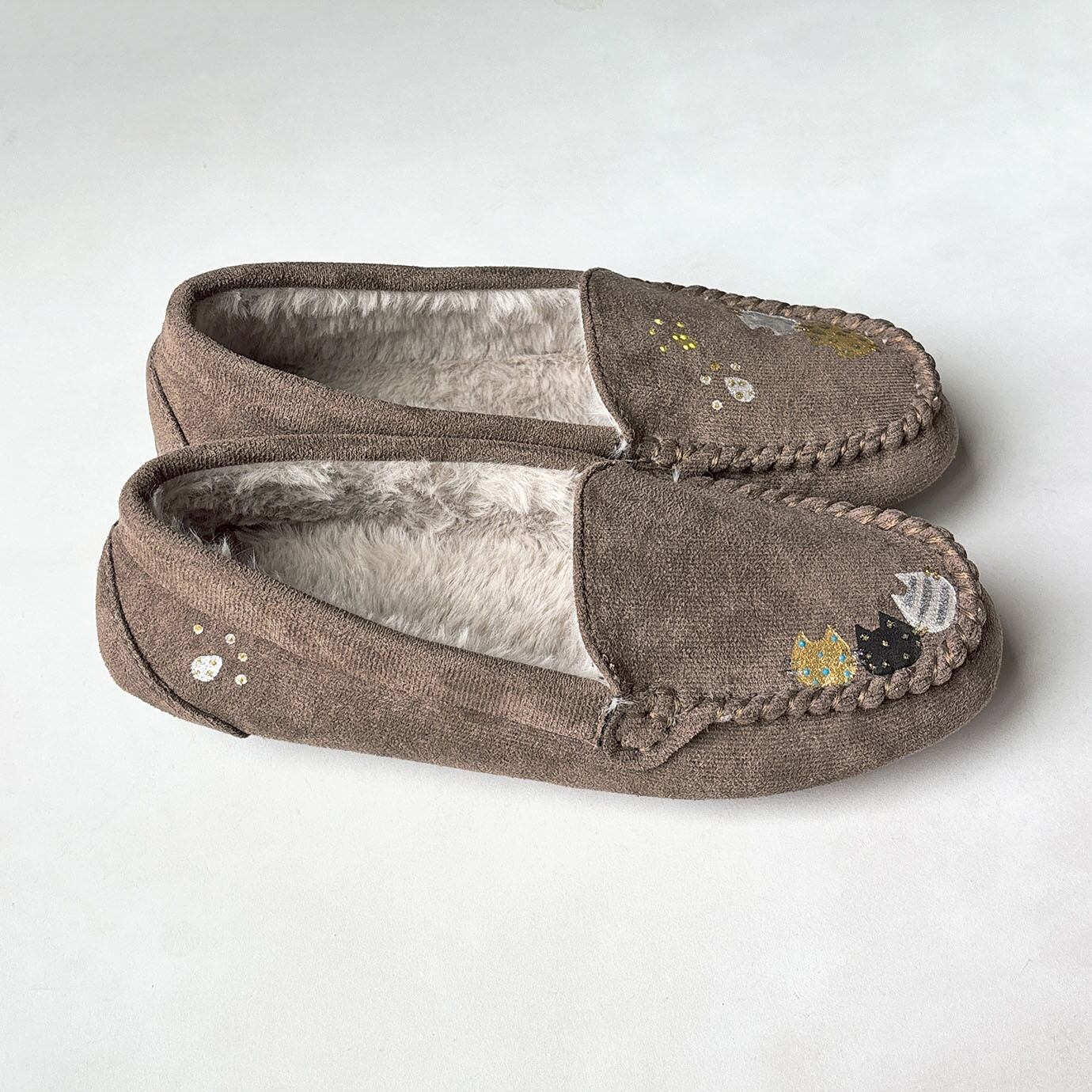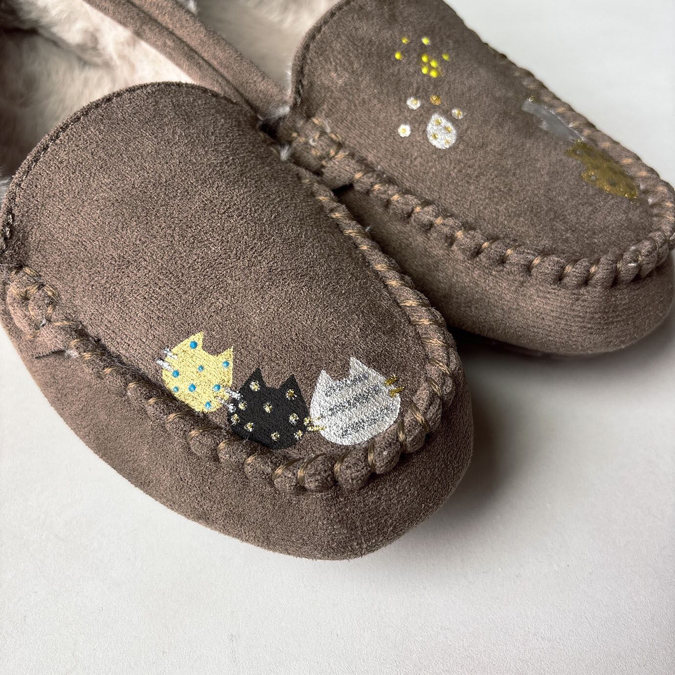 猫柄×モカシンシシューズ「にゃんモカ」カラーモカ!