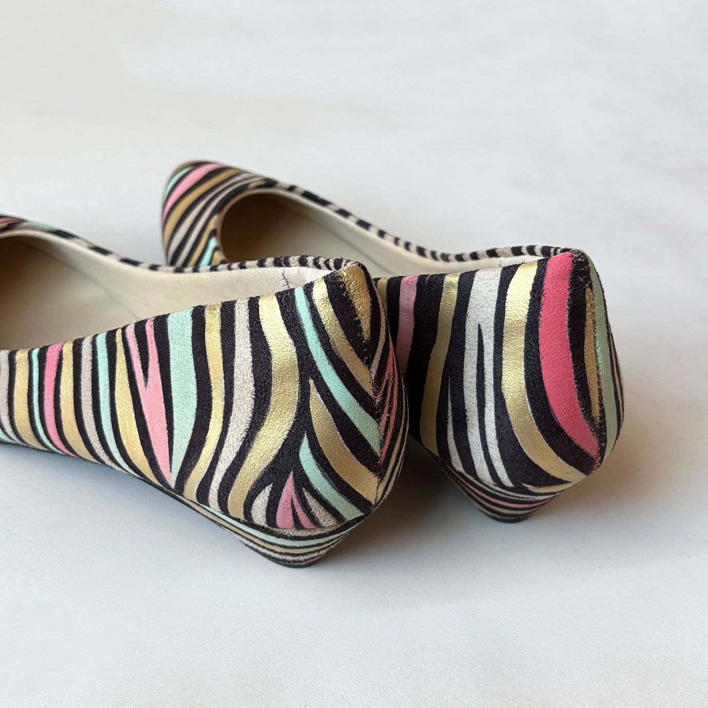 ワイルドエレガンス:カラフルなゼブラ柄ヒールシューズ