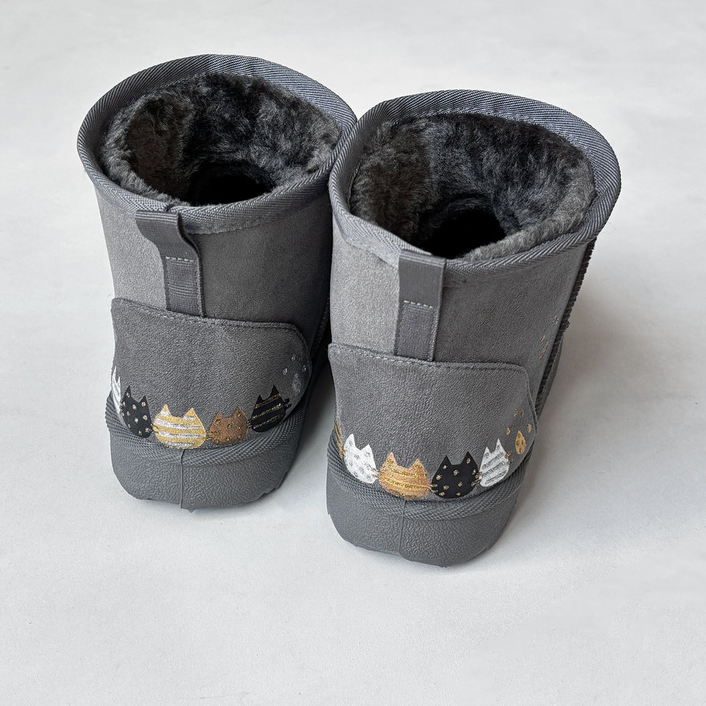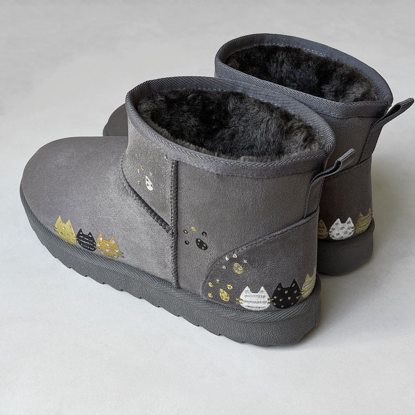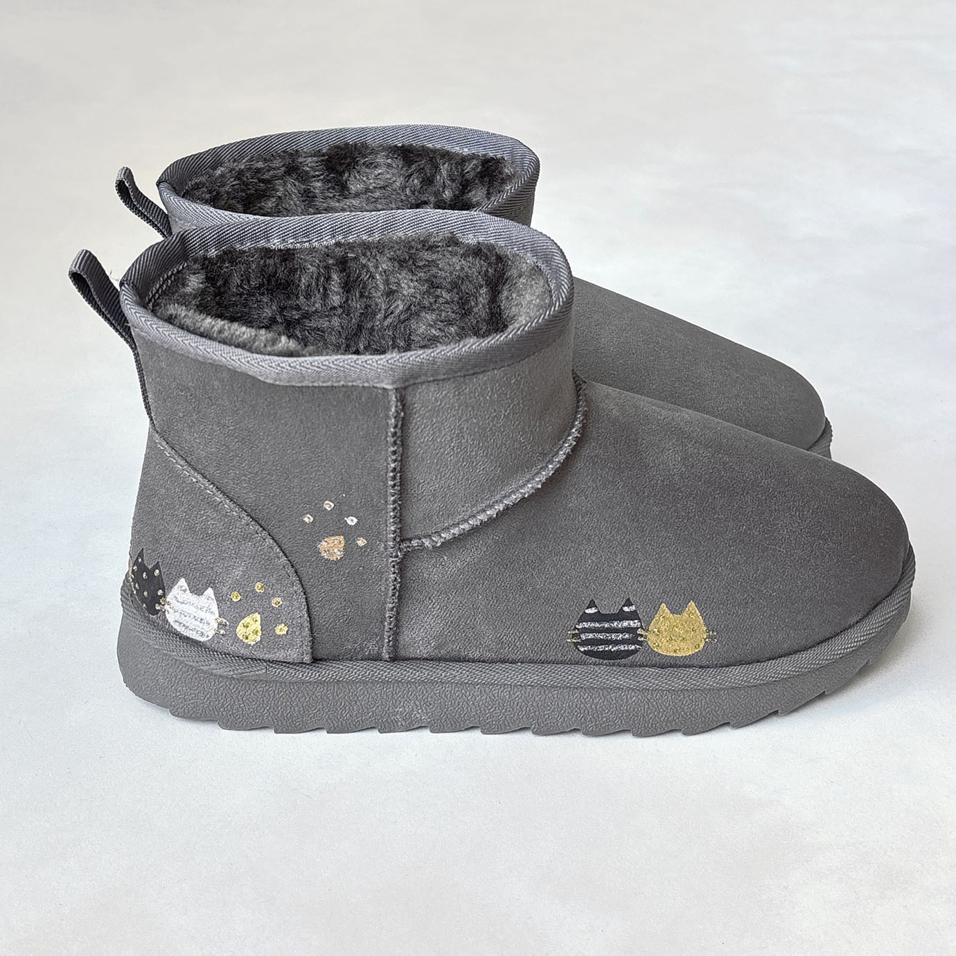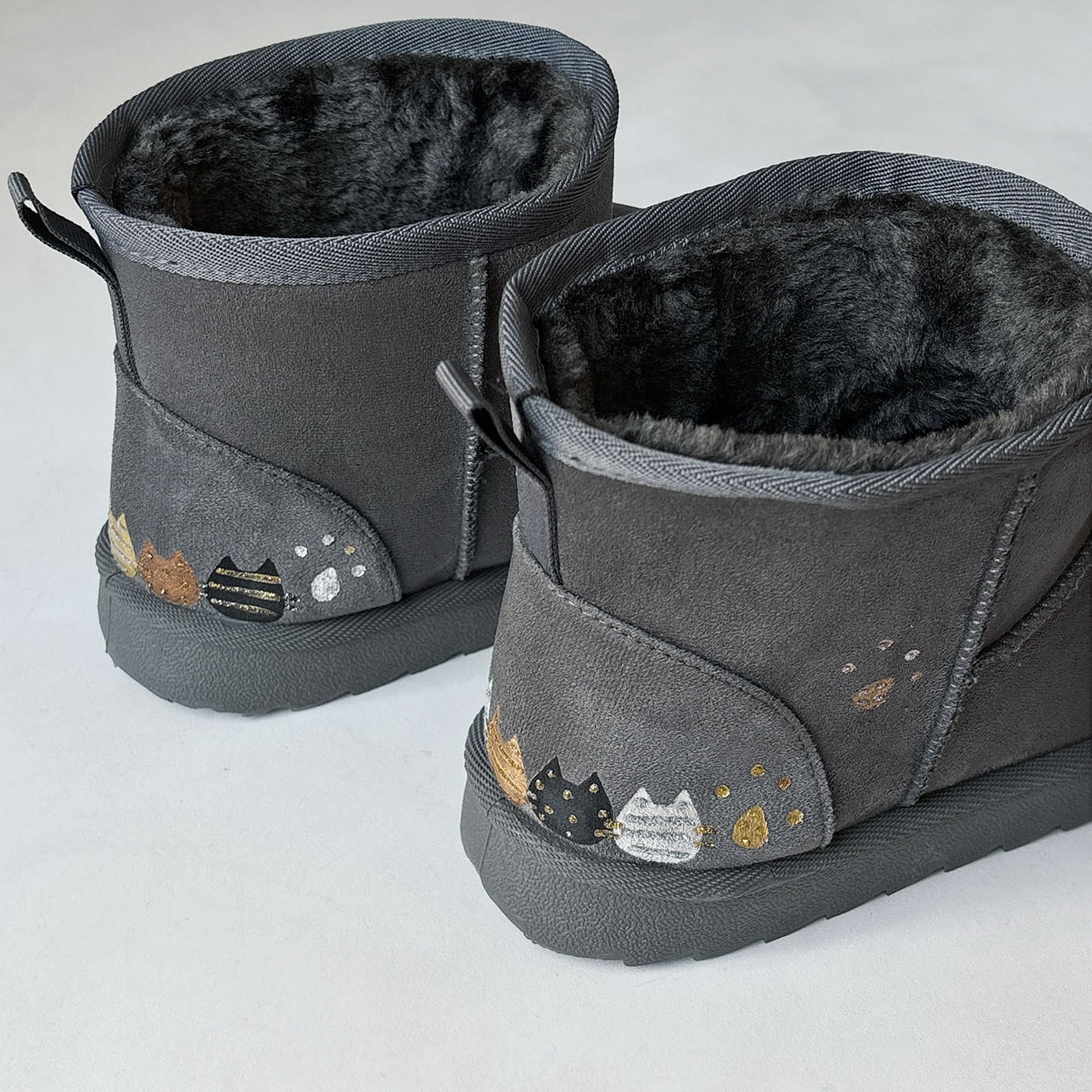 《Mサイズ限定特価》あったかボアのショート丈ねこ柄ブーツ✳︎ダークグレー!見え方を意識したユニークなブーツ*3日以内発送