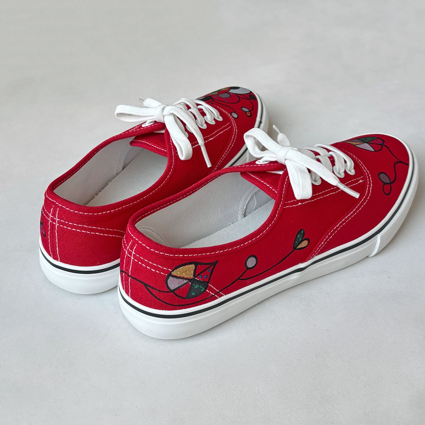 《 送料無料 》スニーカー「ジョーヌlR」春のお花柄デザイン!レッド!レディース 2E【22.5〜25cm】受注制作