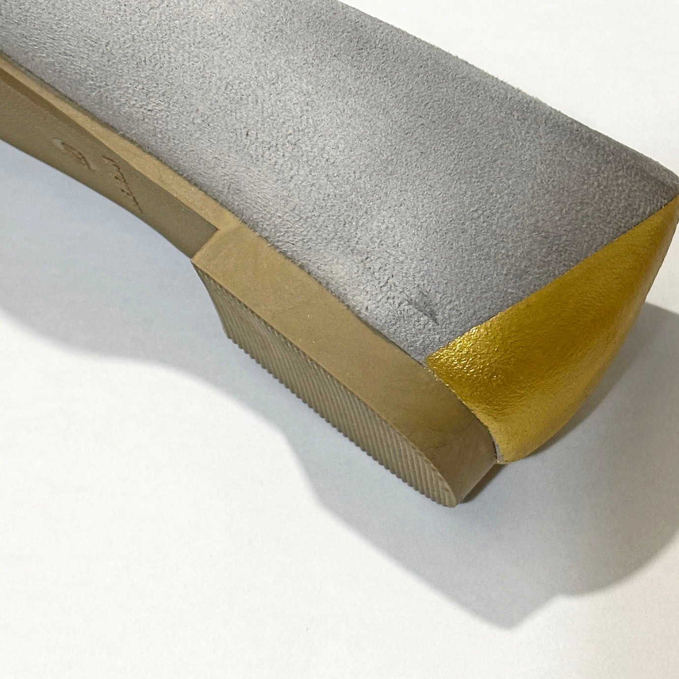 《アウトレット 22cm限定特価 ヒール1.5cm》パンプス「ポインテッドトゥ Anti」グレー×ゴールド*大人ローヒールパンプス【5日以内発送】