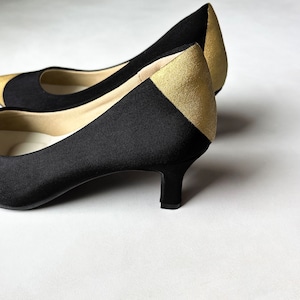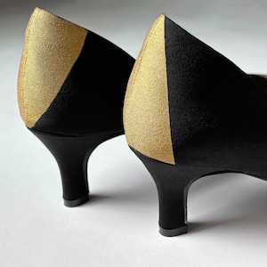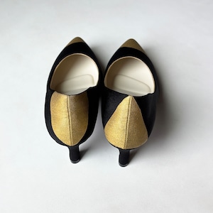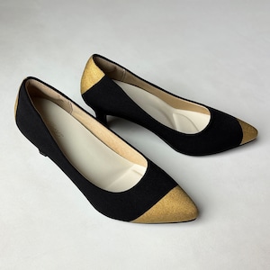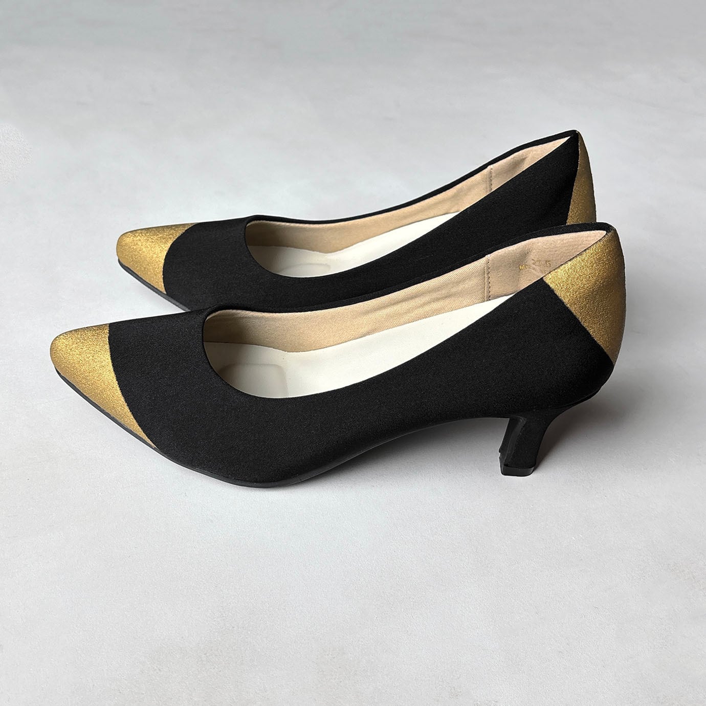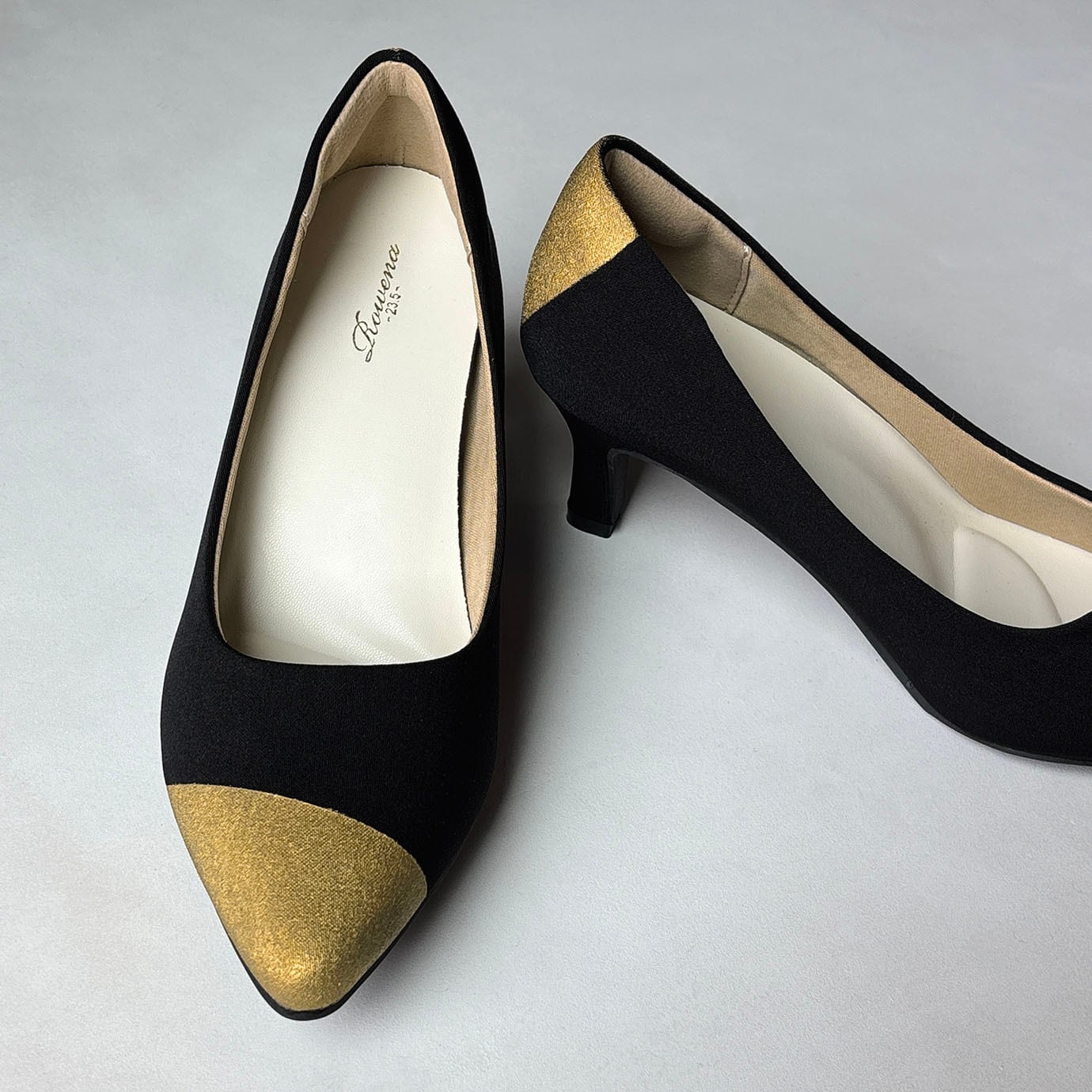 パンプス「ポインテッドトゥ Anti」5.5cmヒール!黒×ゴールド!パイカラー!大人可愛いパンプス*結婚式や入学式、普段使いなど【受注制作】