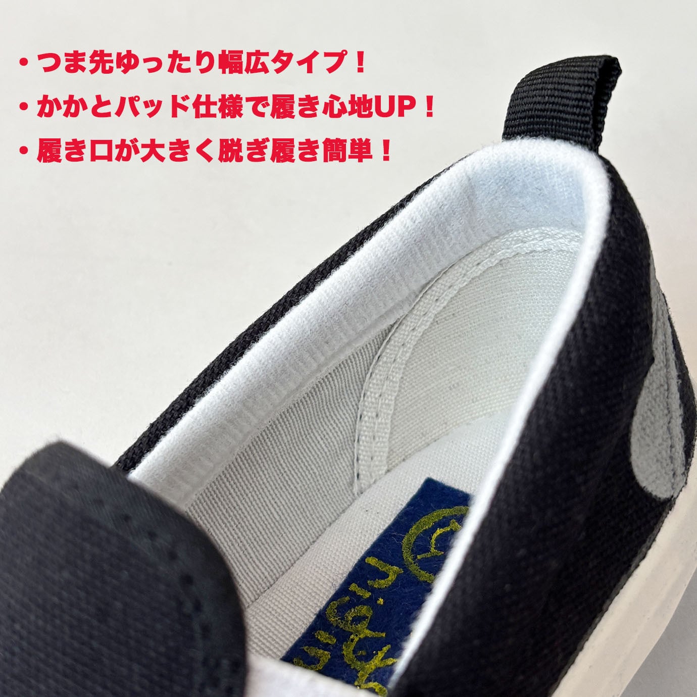 両側サイドゴムなので、脱ぎ履きもスムーズです!