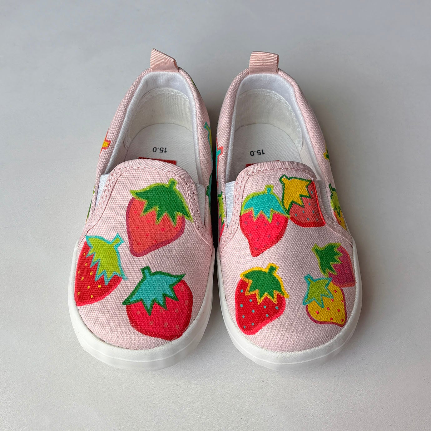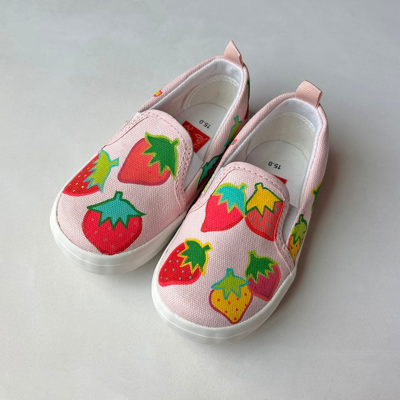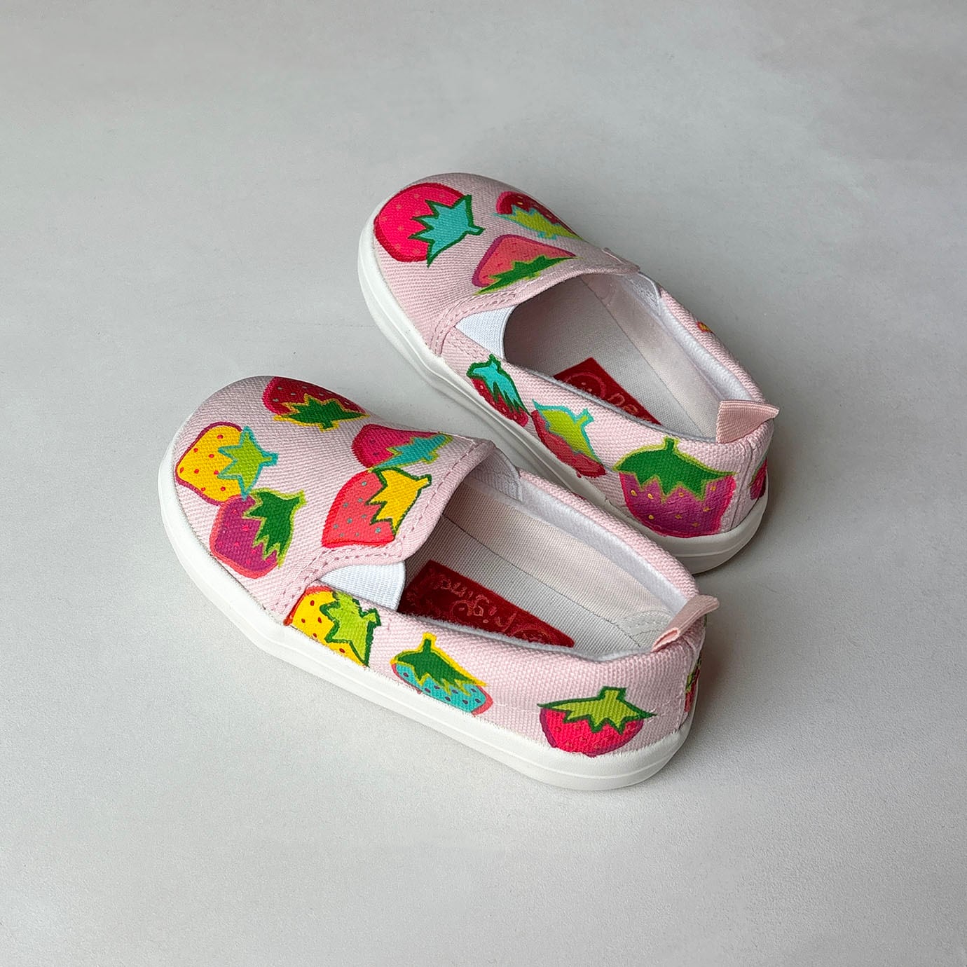 キッズスニーカー「いちご」*カラフルな苺柄デザイン! かかとパッド仕様で履き心地は快適!子供靴 受注【名入れ可】