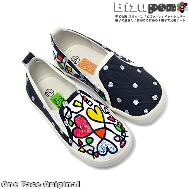 キッズスニーカー「ビズッポン」ハート柄アシンメトリー!子供靴 スリッポン【受注制作】【名入れ可】