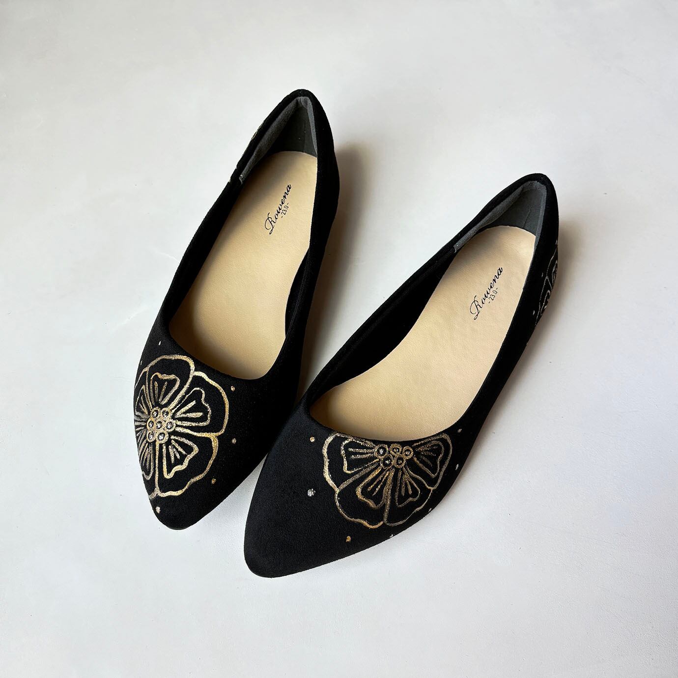《23cm限定価格》パンプス「HAGO」黒とゴールドを中心に描いたシックなデザイン!ポインテッドトゥ【5日以内発送】